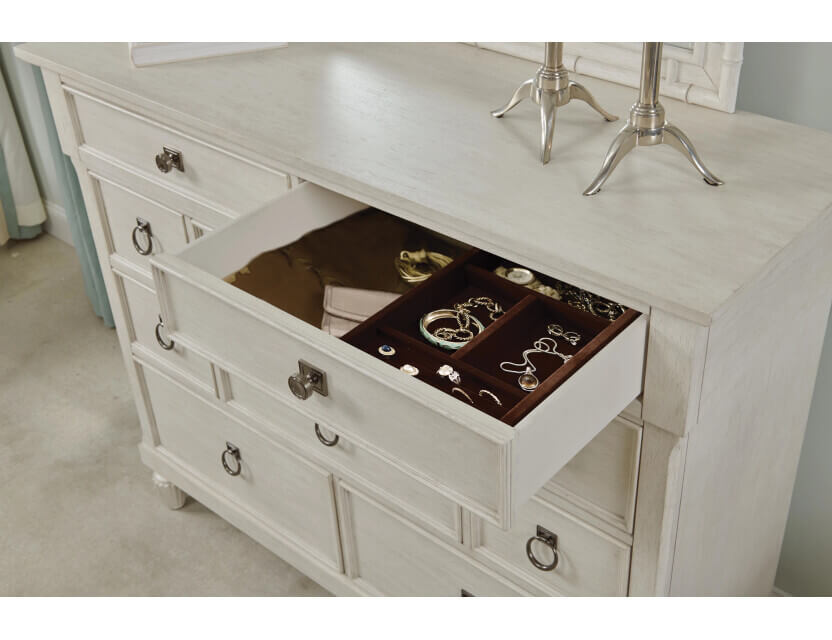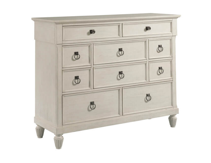 The Grand Bay Aster Bureau offers an array of drawer sizes making it the perfect piece for stylish organization. It also serves well as the centerpiece for a sophisticated casual bedroom.
