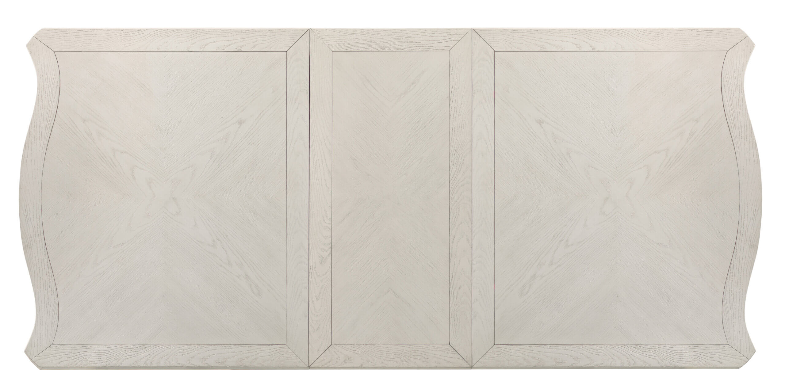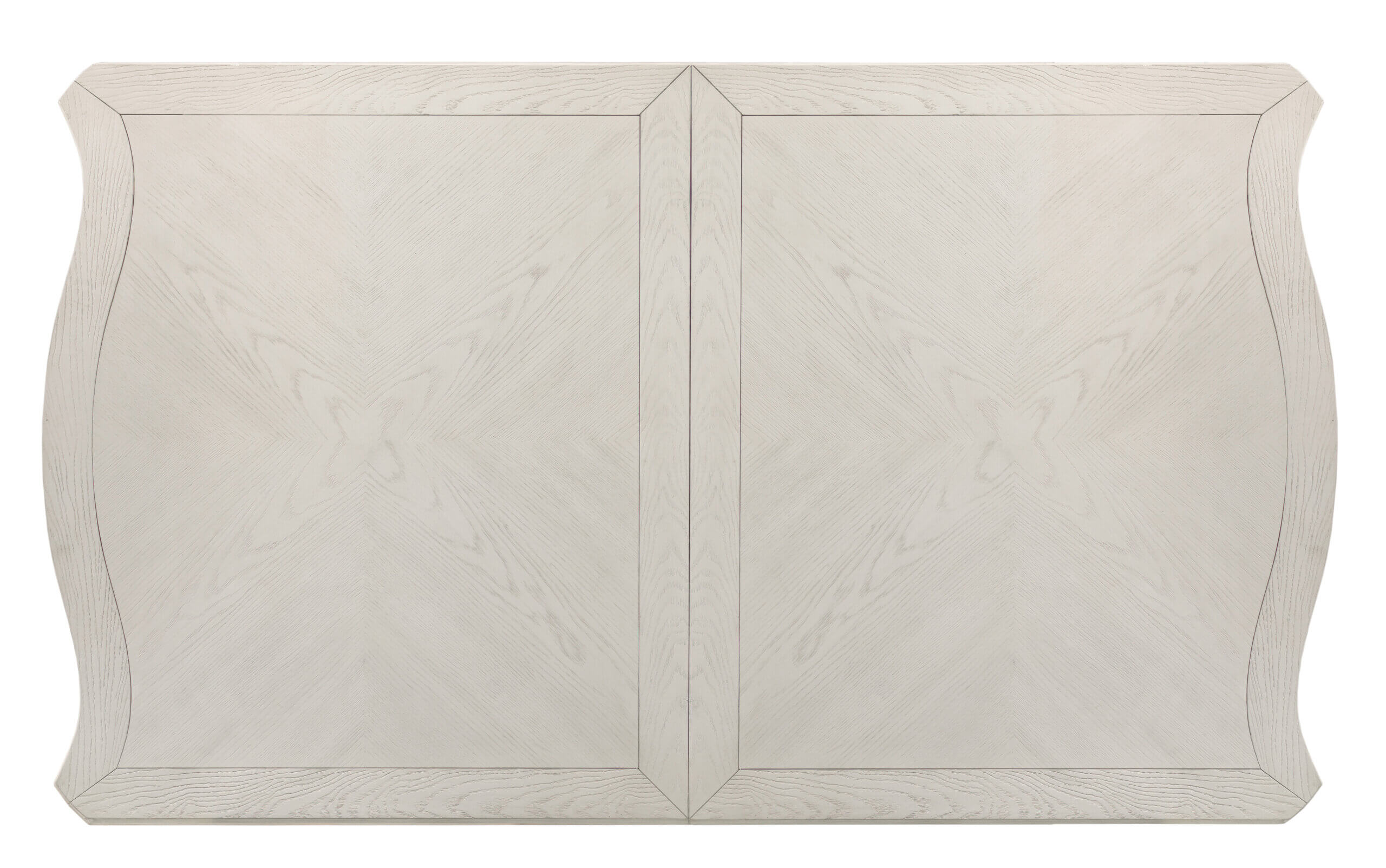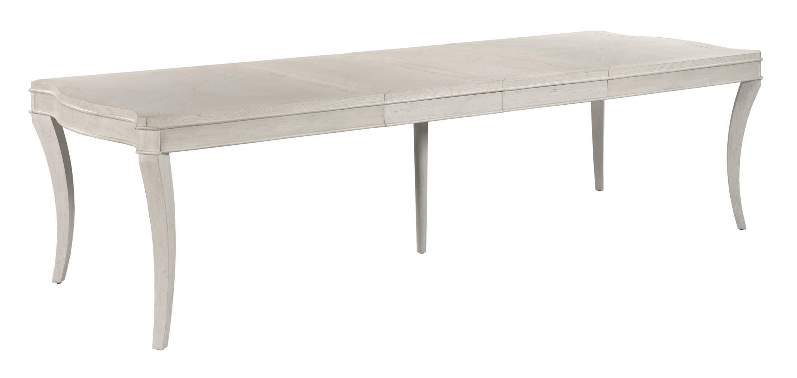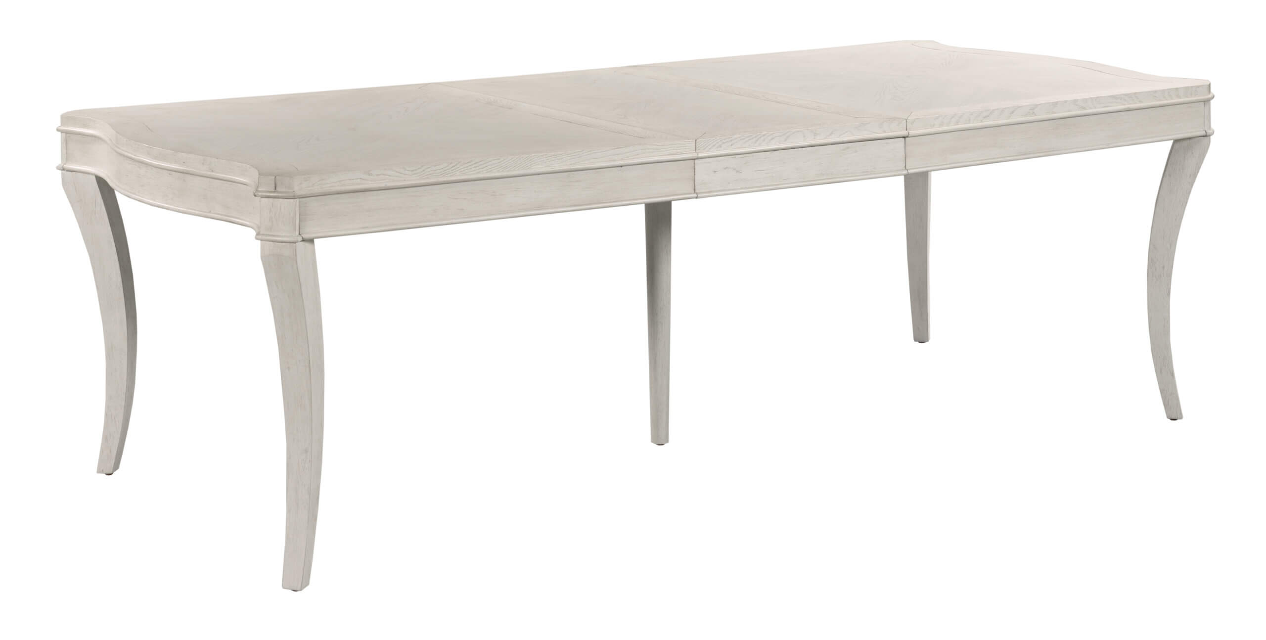 The Carissa Leg table is a beautifully crafted elegant dining table. Constructed of cathedral white oak veneers with serpentine saber shaped legs in an Eggshell finish, and outfitted with two 20 inch leaves, it sets just the right tone for sophistication.