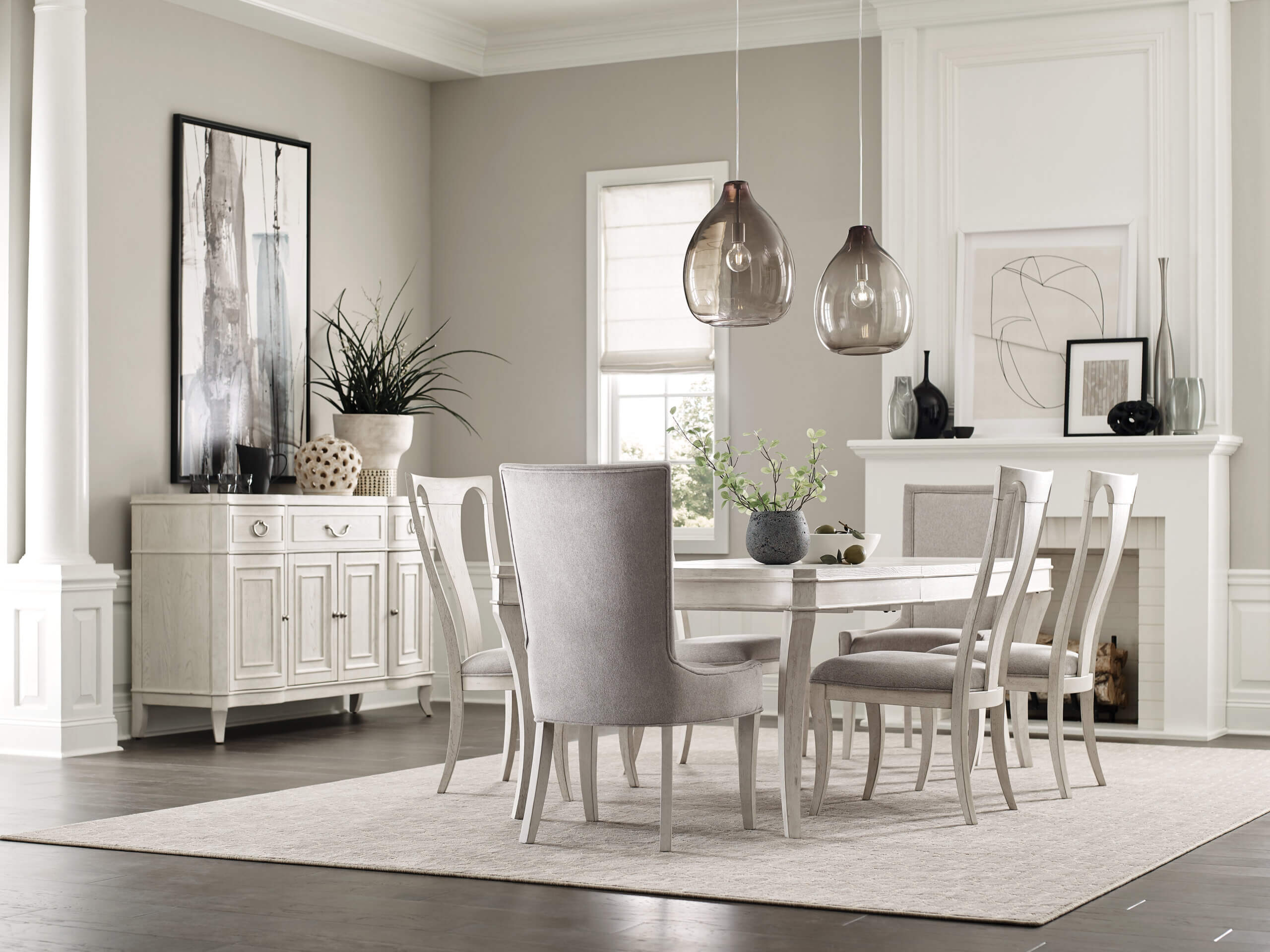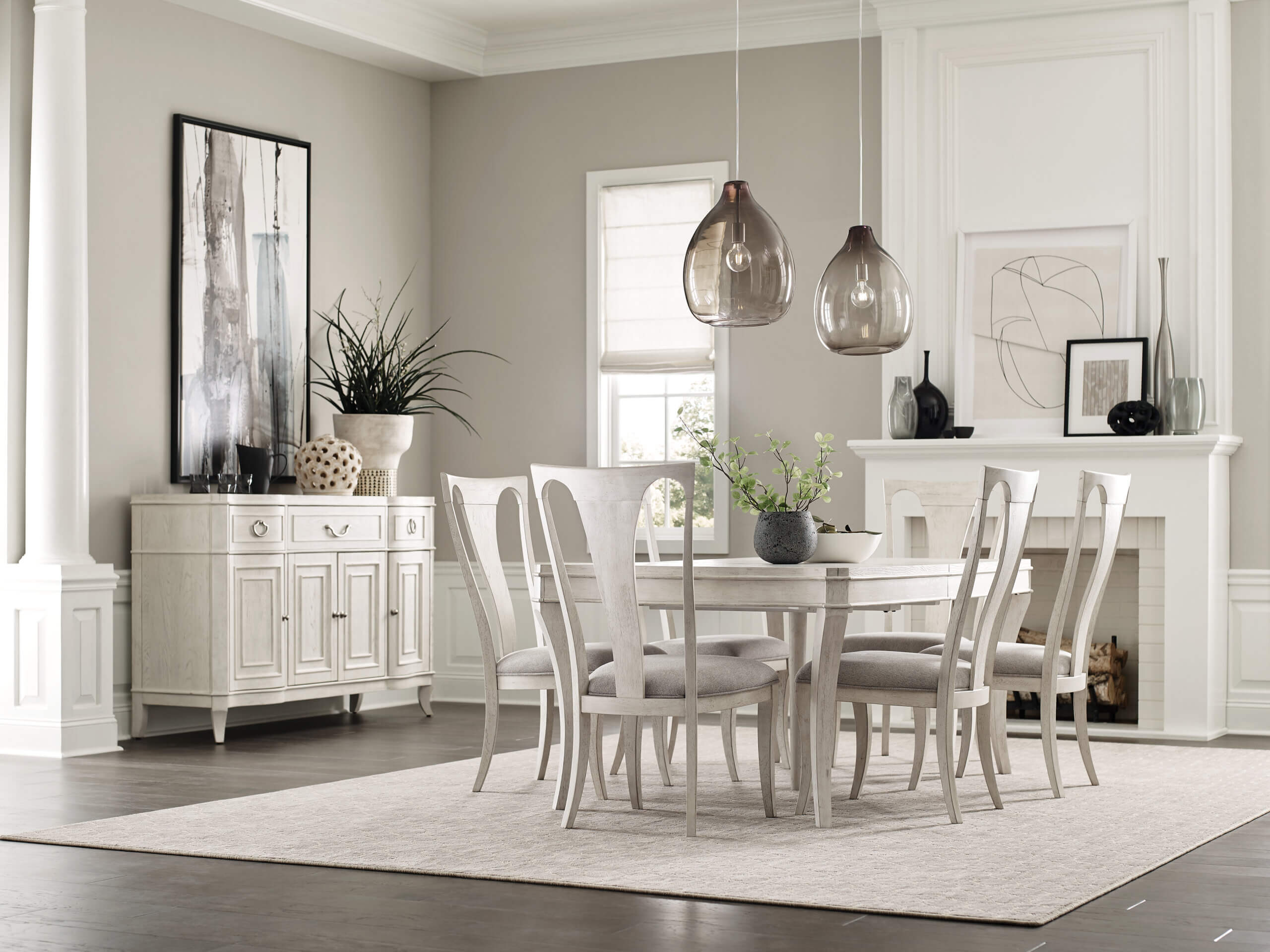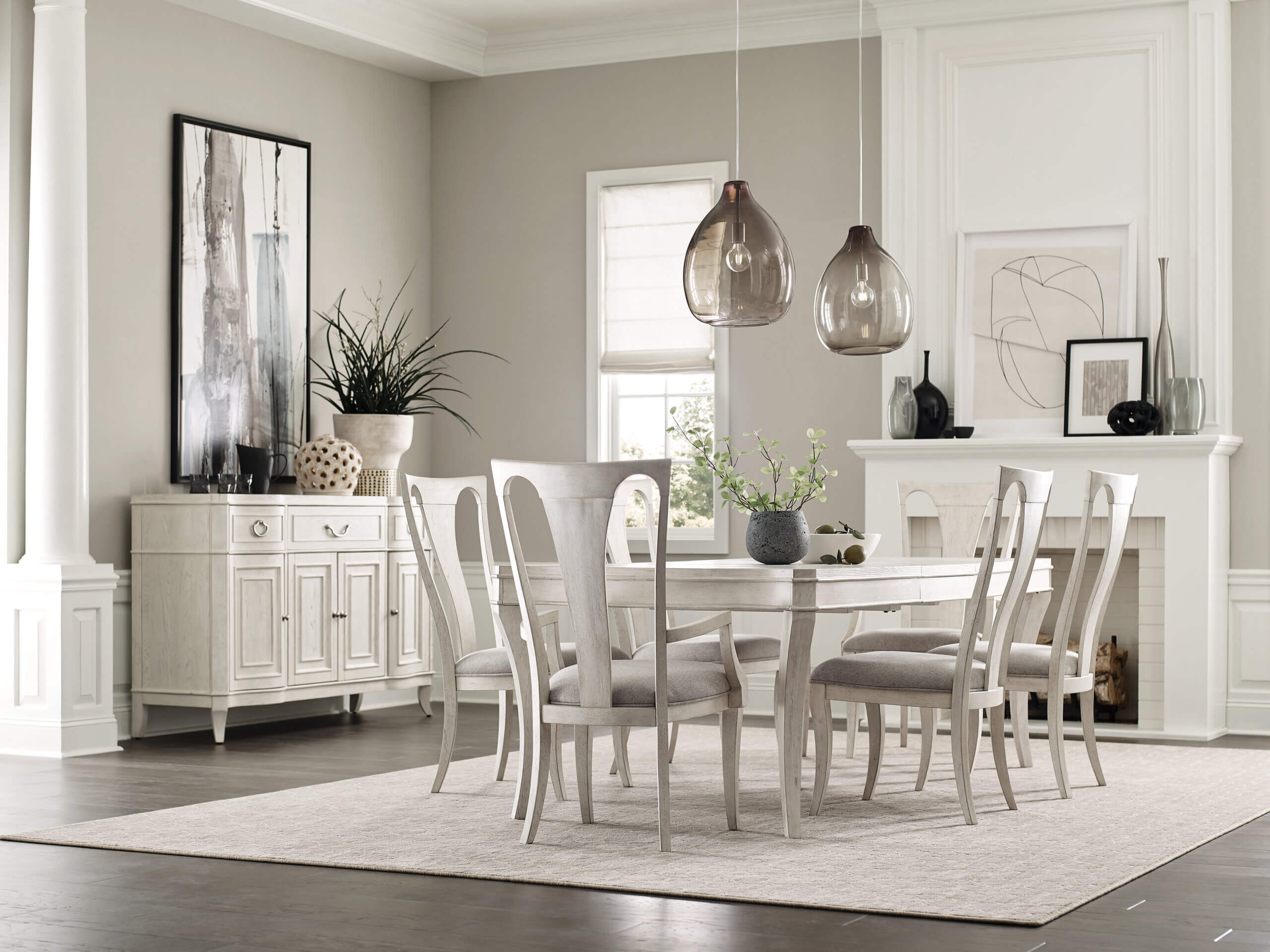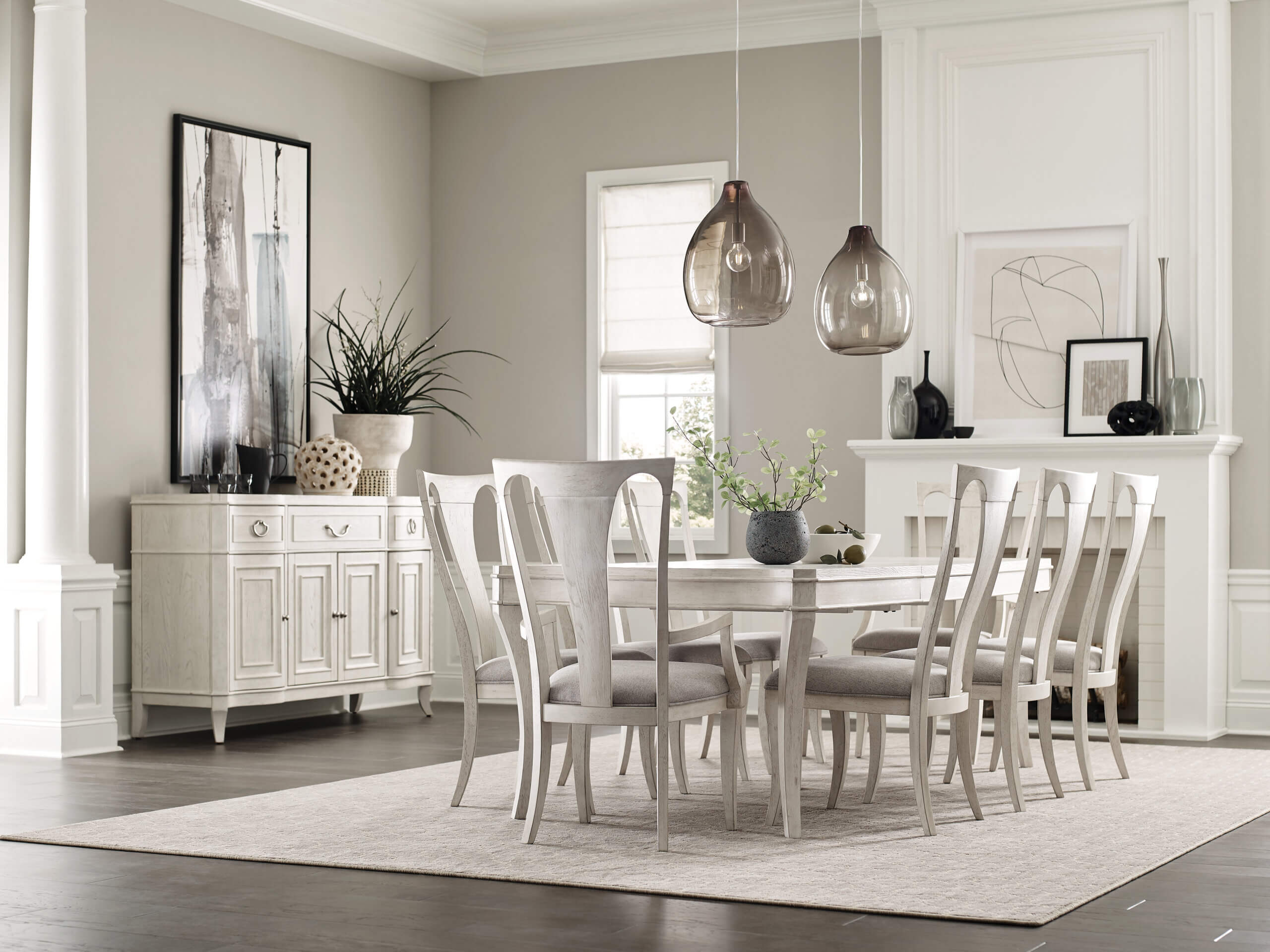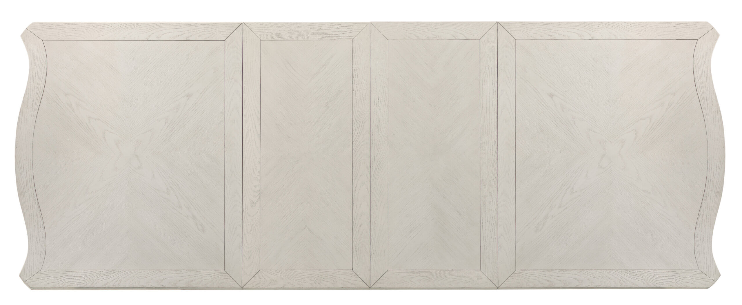 The Carissa Leg table is a beautifully crafted elegant dining table. Constructed of cathedral white oak veneers with serpentine saber shaped legs in an Eggshell finish, and outfitted with two 20 inch leaves, it sets just the right tone for sophistication.