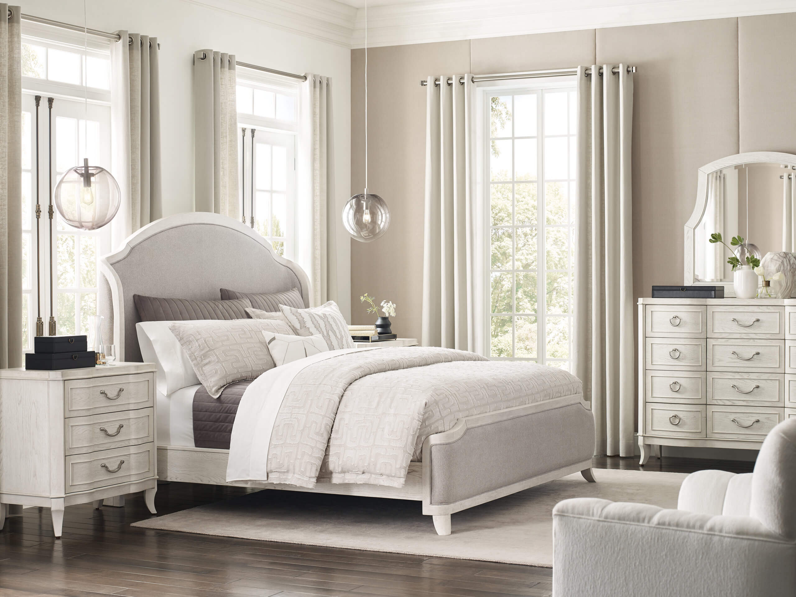 Inspired by a move toward casually elegant sensibilities, the Harmony Collection creates an easy-going nature while retaining a look that is very sophisticated. This balance is a great way to keep the décor comfortable to live in without being sloppy or careless. To achieve this, Harmony takes advantage of the natural wood grain in split heart White Oak veneers, and sets that against the bold backdrop of an Eggshell White finish. This character is accentuated across a range of interesting lines and details such as serpentine fronts and the curved shapes found throughout the collection. The result is both refined and relaxed.