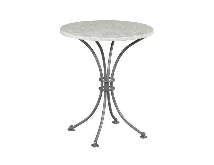 Chairside table that has a beautiful stone top and sculptured metal base. Sized just right to fit any area in the home.