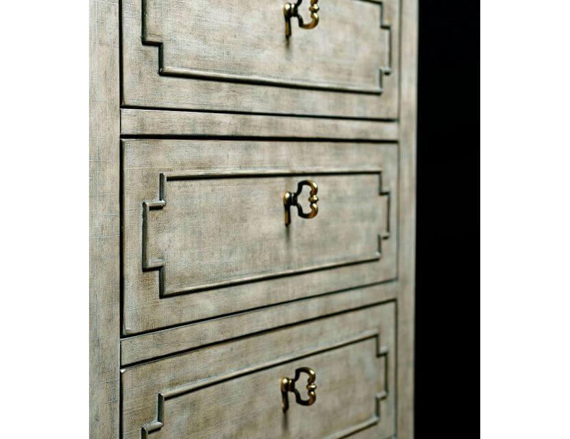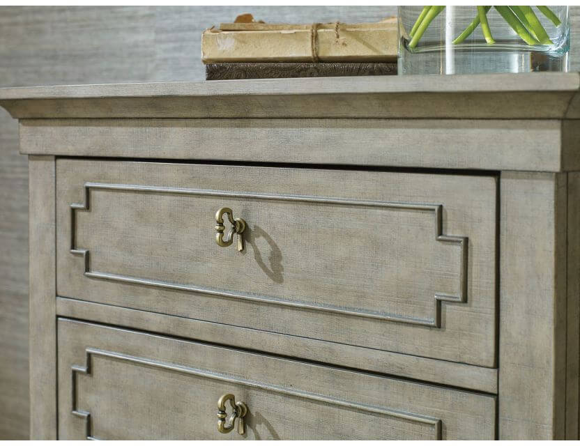 Finely appointed details and casual, balanced structure contribute to Savona's Old World European feel. Inspired by Gustavian, European provincial and country cottages, the collection features a unique textured Versailles finish with contrasting elm tops. A variety of moldings, metal fretwork and antiqued mirror add an antique feel. The hardware complements the aesthetic with a vintage gold finish. Perfect for clean, classic home styles, Savona puts a confident, elegant twist on antique Old World furniture trends, offering a vintage, antique feel without sacrificing reliability and quality.