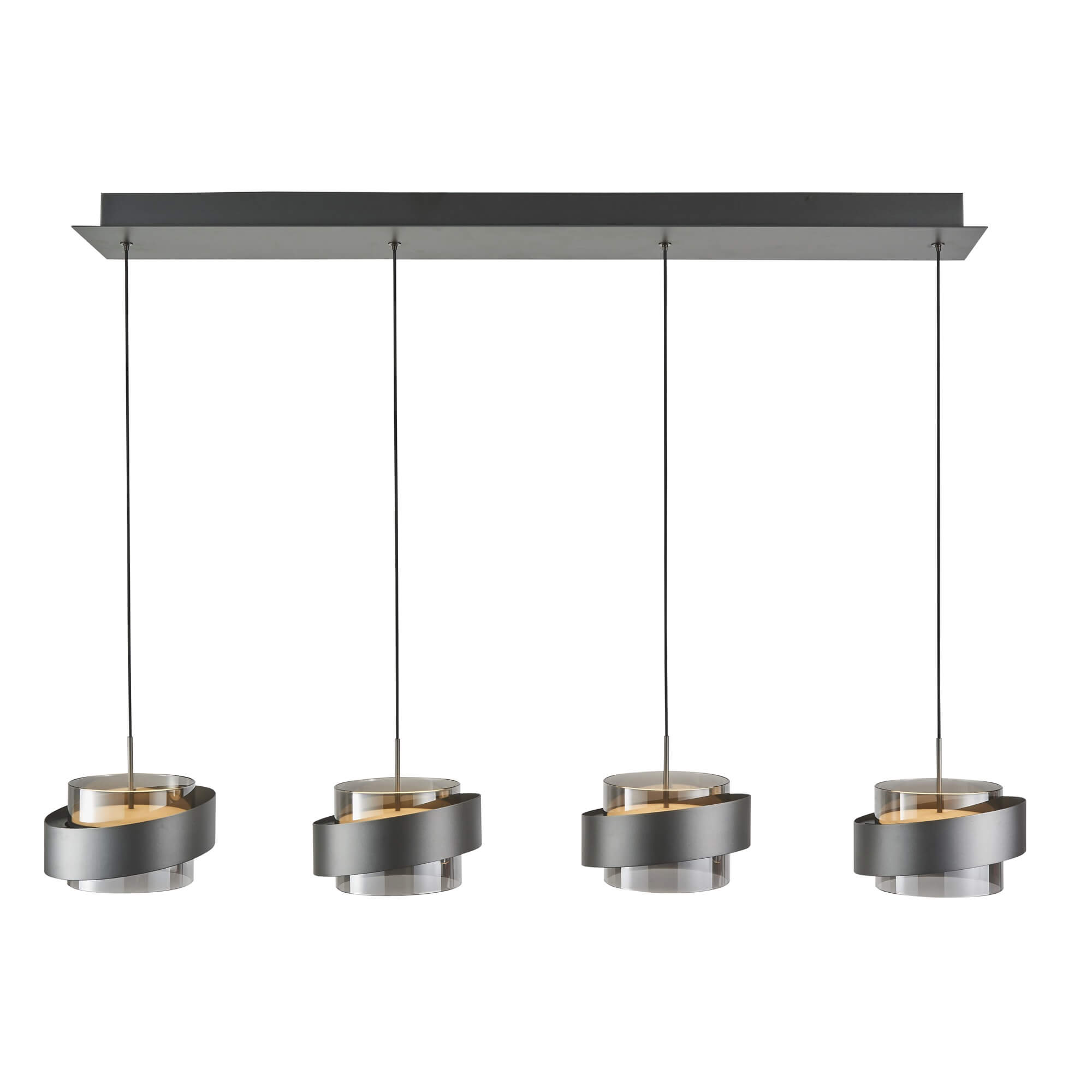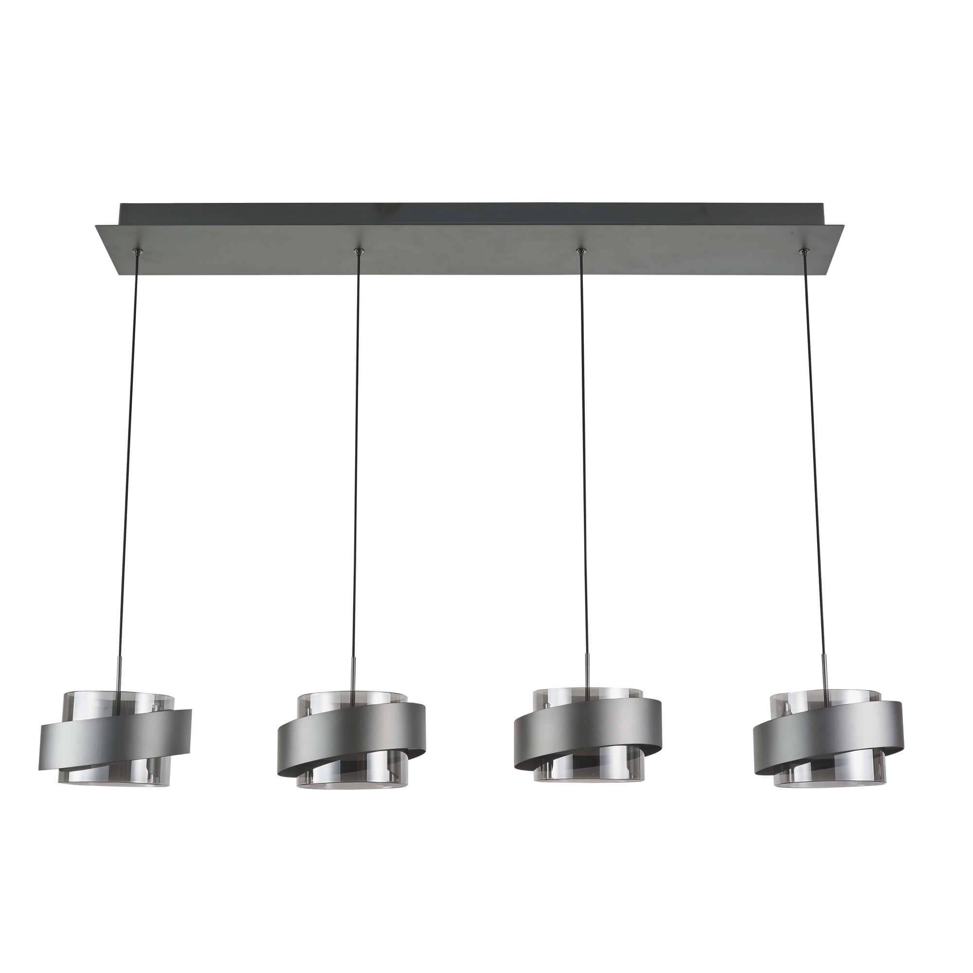 The Axis collection features this sleek LED linear island chandelier, defined by its modern architectural silhouette and clean lines. The fixture showcases four clear LED covers that are elegantly surrounded by a sophisticated graphite finish, creating a bold contemporary contrast. Designed for versatility, this chandelier is 3CCT enabled, allowing you to adjust the color temperature to perfectly suit your dining or kitchen area's ambiance. This combination of integrated technology and refined industrial aesthetics makes it an ideal statement piece for minimalist or transitionally styled interiors. Great for rectangular shaped kitchen or dining room tables or over an island.
