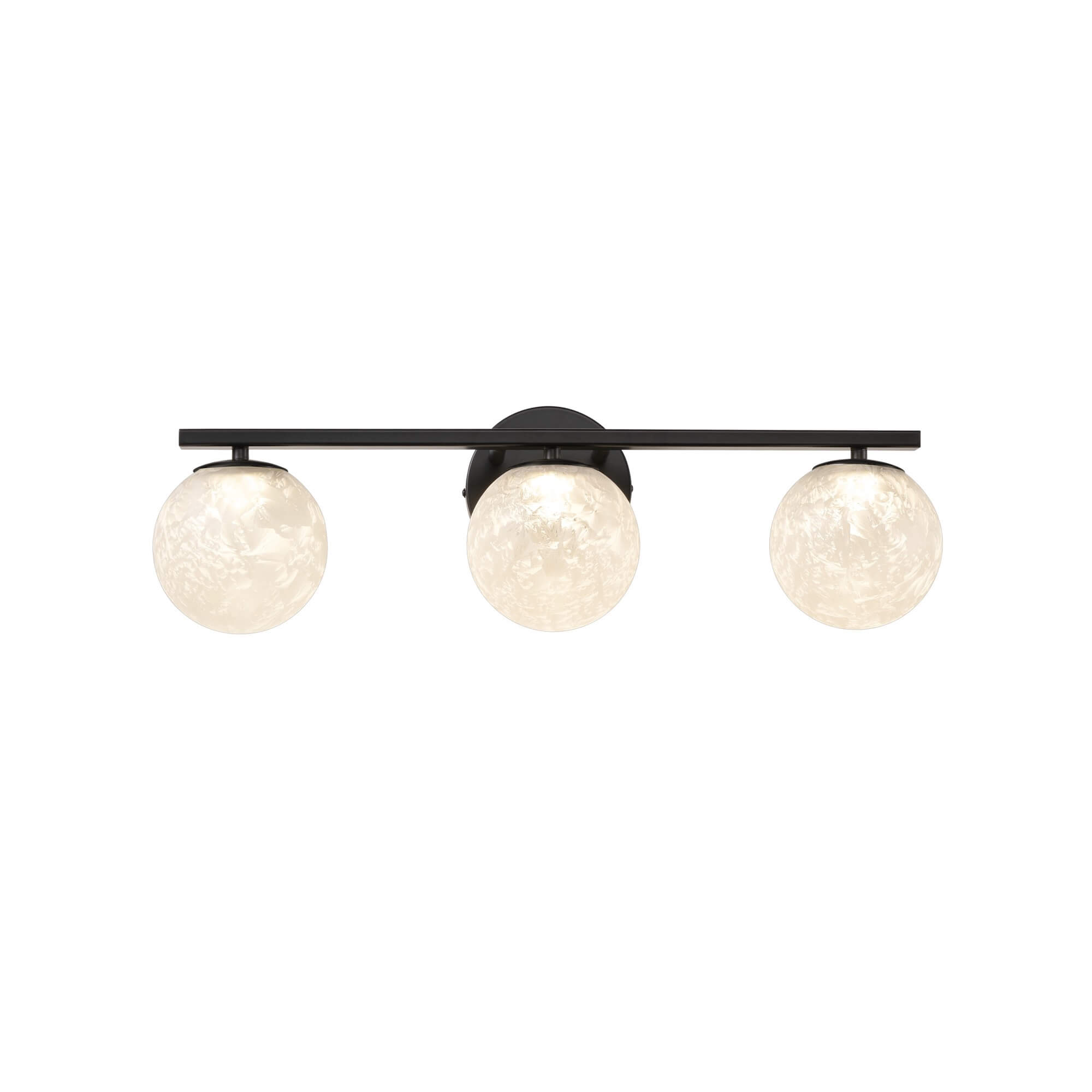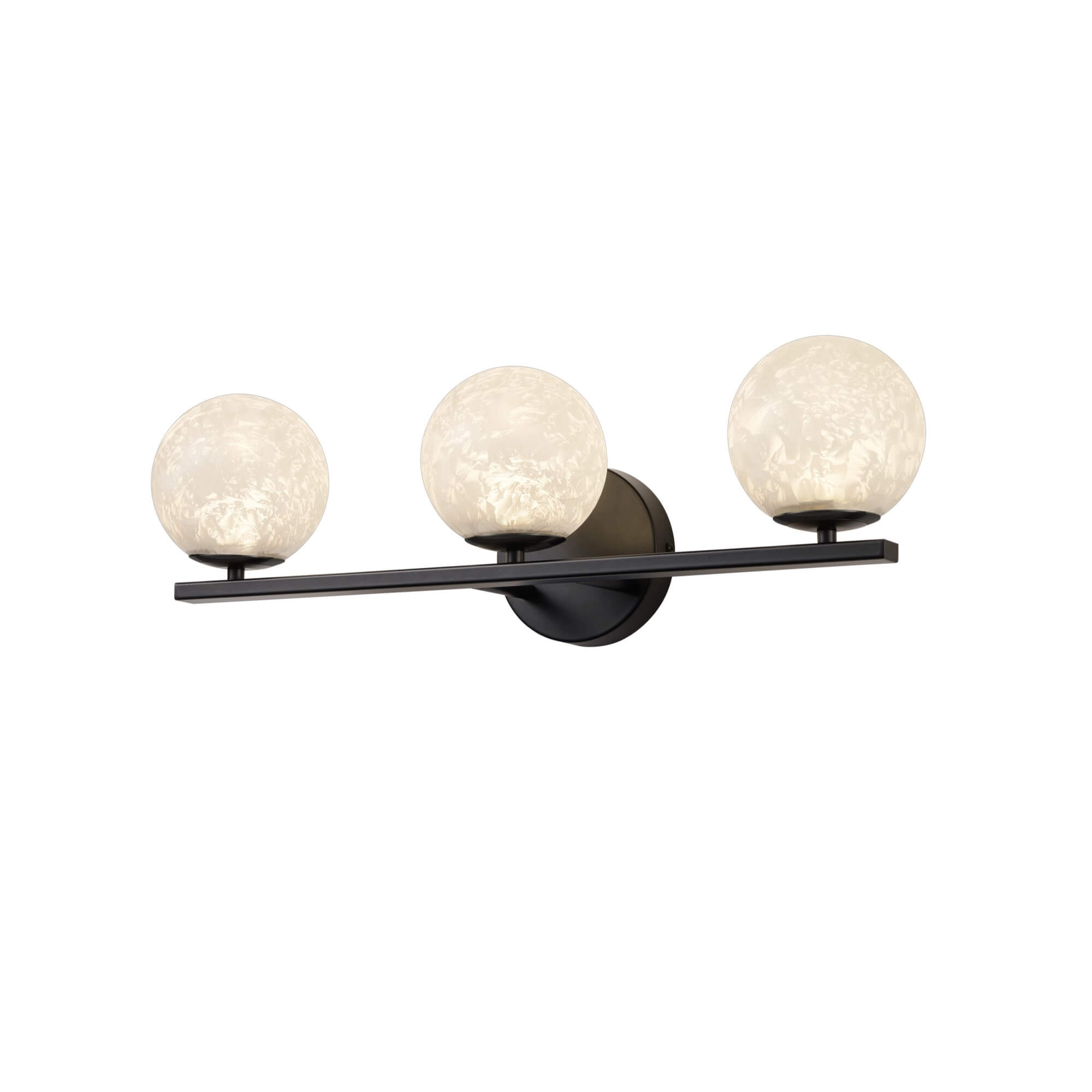 The Forma collection features this elegant 3 lite LED wall sconce, showcasing a stunning globe of "Ice Glassware" that provides a brilliant, crystalline glow. This artisanal glass is beautifully supported by a modern bold black frame, offering a clean and sophisticated aesthetic for any interior. For ultimate versatility, this model is 3CCT enabled, allowing you to select the perfect color temperature to suit the mood of your home. Its sleek and durable design makes it an ideal lighting solution that can be used in vanities and bathrooms.