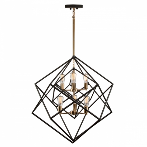 Stunning in design, this two tone multiple square chandelier from the "Artistry" collection is an instant classic. The interior has a harvest brass frame, while the exterior frame is a matte black finish. Multiple rods included with hangstraight for sloped ceilings. (Larger sizes available)
