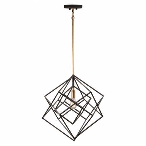 Stunning in design, this two tone multiple square chandelier from the "Artistry" collection is an instant classic. The interior has a harvest brass frame, while the exterior frame is a matte black finish. Multiple rods included with hangstraight for sloped ceilings. (Larger sizes available)