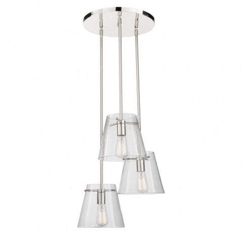 From Designer Steven Sabados of S&C, the Café Collection is based on the inspiration of having a floating look. The chromed plated frame leads to clear cone shaped glassware that looks stunning with Edison filament bulbs. Shown in a 3 light circular canopy model. (also available in other configurations)