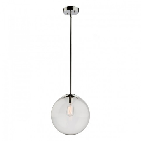 Circular in shape, this clear glass pendant from the "Lux" collection is suspended on metal rods. The socket cover, holder, rods and canopy are chrome plated. Comes with additional rods for height adjustment (also includes a hang straight)