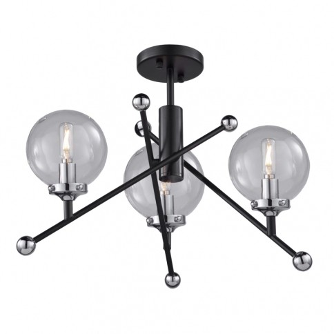 The Vero Modo collection is ultra trendy and fits many surroundings. This semi flush mount has a matte black body with chrome accents complimented with clear glass spheres. This series is illuminated by G16 LED bulbs (candelabra sockets). (Other configurations available).