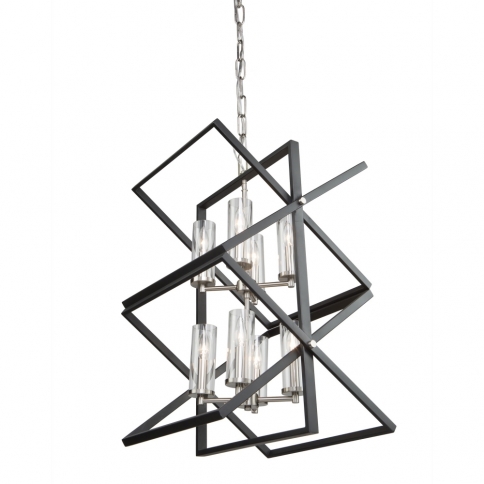 Beautiful matte black cages encasing a polished nickel frame with clear cylinder glassware makes the Vissini collection a beautiful addition to any surrounding. 8 light chandelier shown. (Many companion units available)