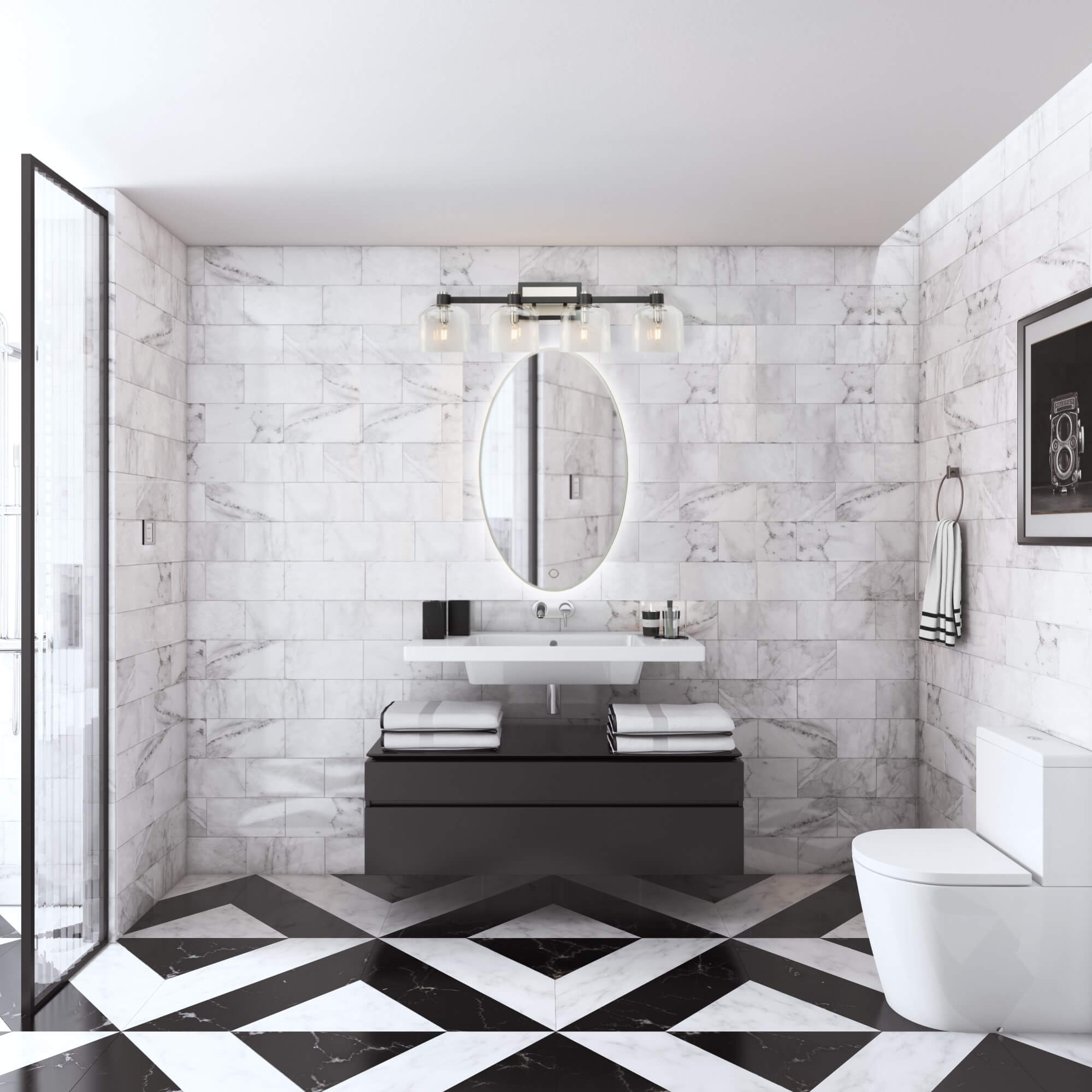 Based on the premise simplicity, Steven Sabados (S&C) wanted to create a simple beveled mirror with the added feature of LED technology. The "Lunar Collection" is just that. Behind its simple yet clean look, there are bright LEDs which when turned on by the "Smart Touch" switch, makes the mirror look like it is glowing on the wall. The "Smart Touch" dimmer switch allows the user to control the brightness or turn the light on/off on this beautiful mirror.