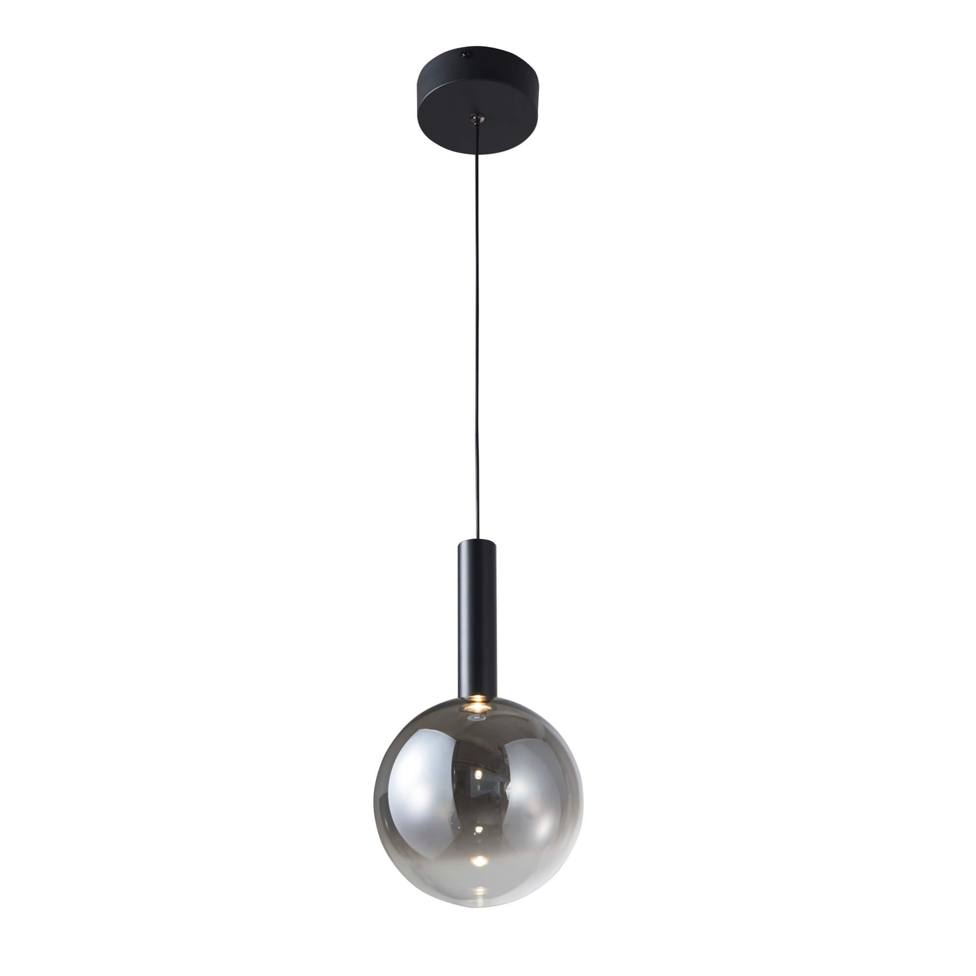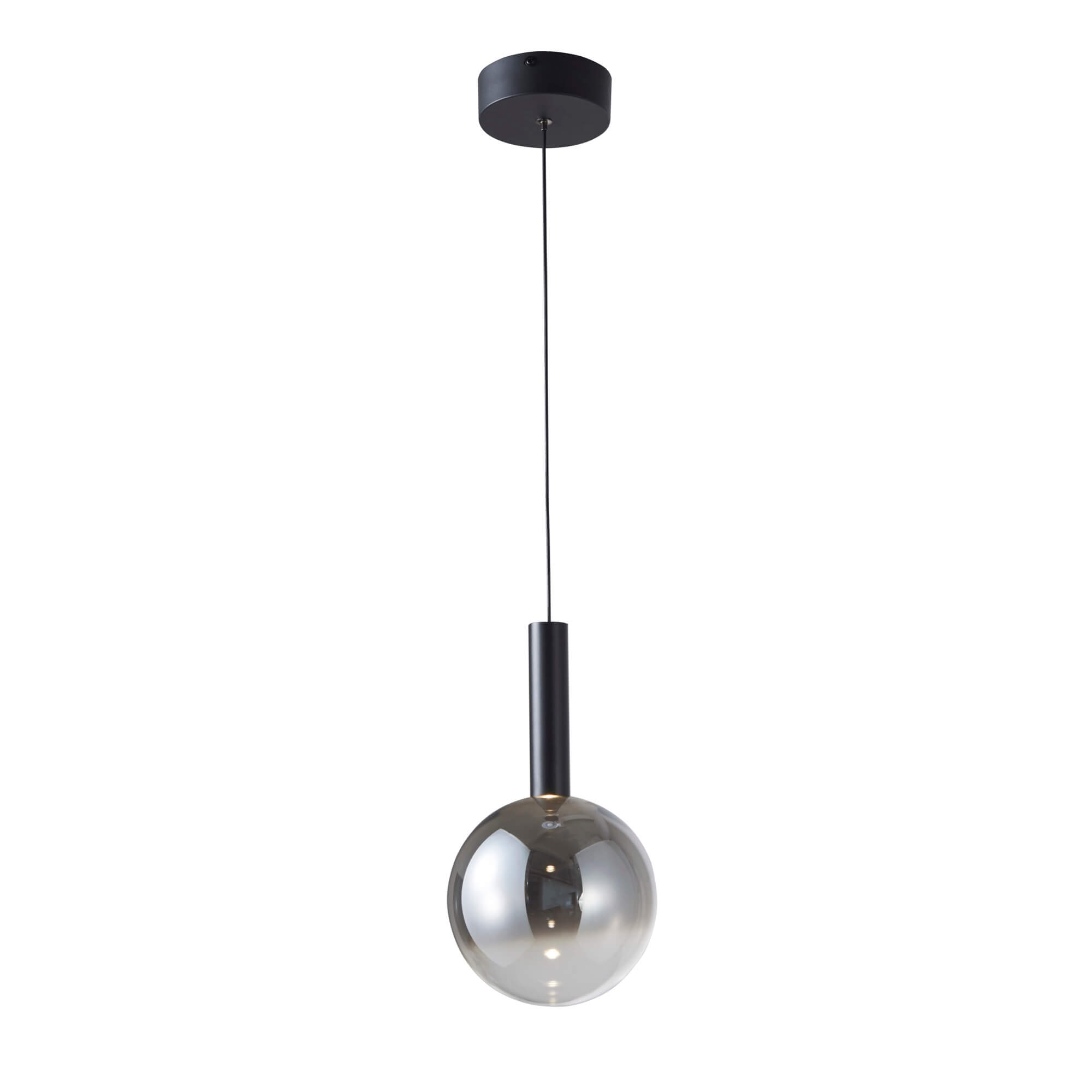The Modella collection presents this sophisticated single LED pendant, characterized by its sleek vertical composition and modern architectural lines. The fixture features a striking glass globe with a beautiful ombre smoke reflective to clear finish, creating a dynamic play of light and transparency. Great for an island or bar area.