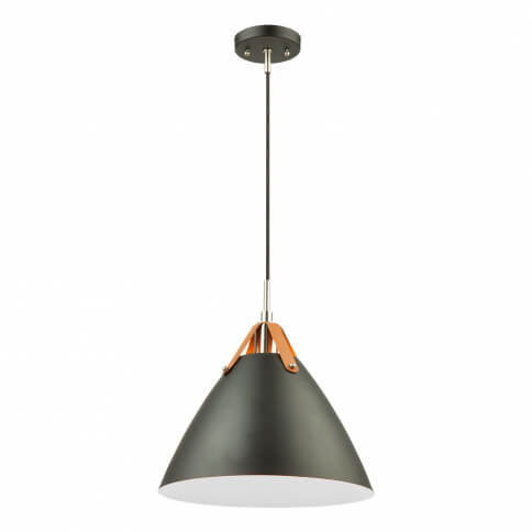 From designer Steven Sabados of S&C, the Tote collection is a definite fashion trend for your home or office décor. The matte black metal shades are suspended to the wiring with leather straps. The interior of the shades have a super reflective white finish for maximum light functionality. Two finishing touches for this design are the polished nickel accents, and the textile black wiring coverings.