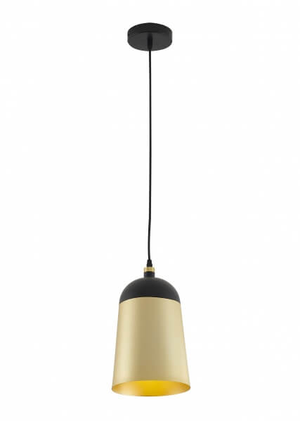 A BLACK WITH GOLD ALUMINIUM TRIM SHADE SINGLE PENDANT LIGHT