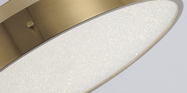 A BRASS FRAME LED FLUSH MOUNT WITH A CLEAR ACRYLIC BEADED DIFFUSER