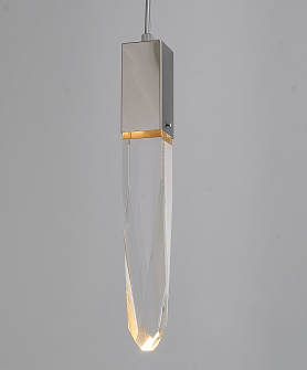 A CHROME FRAME SINGLE PENDANT LIGHT WITH A CLEAR ICEBERG CRYSTAL