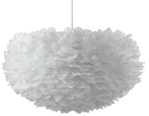 A WHITE GOOSE FEATHER BALL CEILING FIXTURE WITH A WHITE IRON FRAME