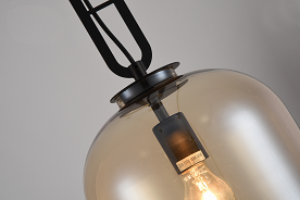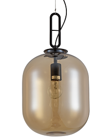 Description : COGNAC GLASS SINGLE PENDANT LIGHT WITH A MATTE BLACK FRAME