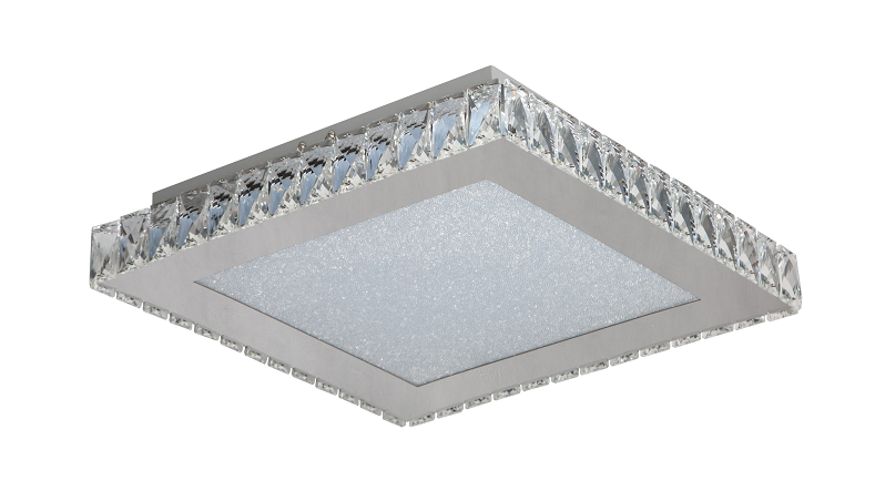 Description : SQUARE CLEAR CRYSTAL FLUSH MOUNT WITH A STAINLESS STEEL FRAME AND BEADED SAND GLASS BOTTOM COVER