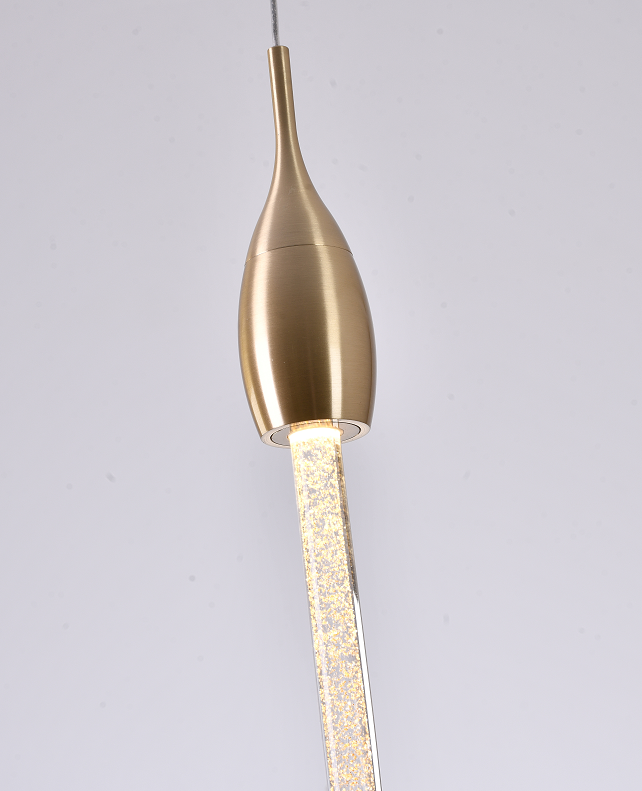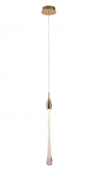 A GOLD DUSTED CLEAR GLASS LED PENDANT WITH GOLD HARDWARE