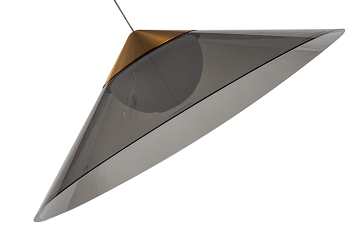 AN ANTIQUE GOLD FRAME LED PENDANT WITH A SMOKE ACRYLIC SHADE