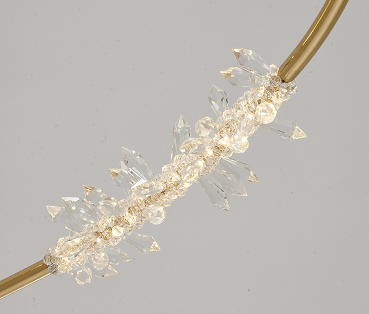 A GOLD HAIRLINE HOOP ROPE CHANDELIER WITH CLEAR CRYSTAL DETAILS