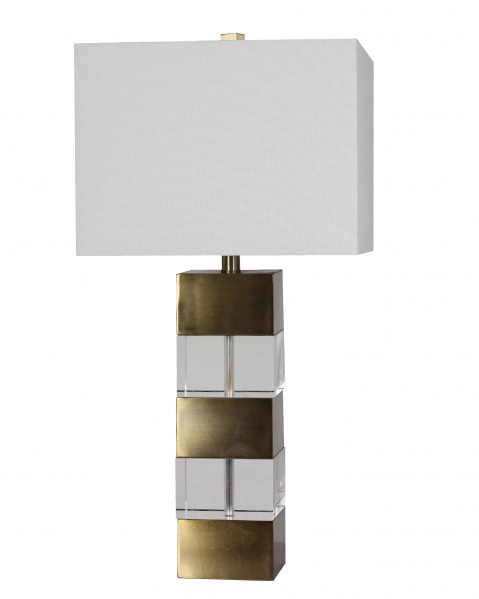 Description : CRYSTAL AND ANTIQUE BRASS METAL TABLE LAMP WITH A DRUM SHADE
