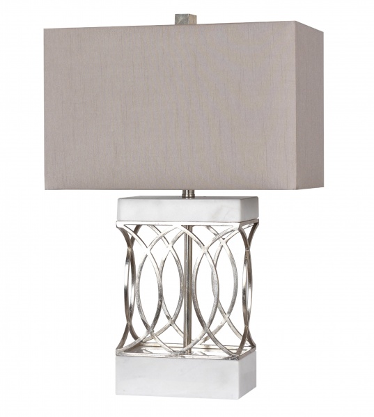 Description : WHITE MARBLE WITH SILVER LEAF METAL TABLE LAMP WITH A BOX SHADE