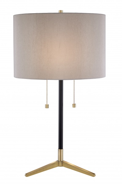 Description : ANTIQUE BRASS & BLACK FRAME TABLE LAMP WITH A DRUM SHADE