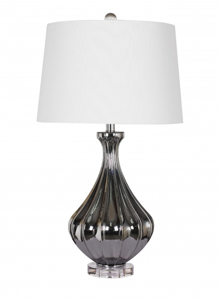 Description : CHROME GLASS TABLE LAMP WITH WHITE SHADE