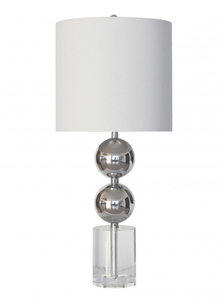 Description : POLISHED NICKEL FRAME WITH A CLEAR CRYSTAL BASE TABLE LAMP