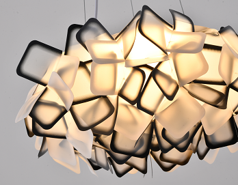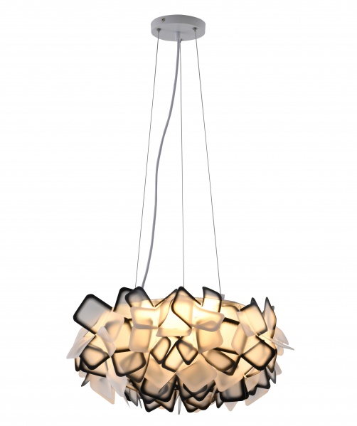 A BLACK & WHITE ACRYLIC LED CHANDELIER WITH WHITE HARDWARE