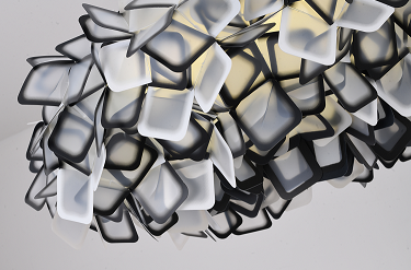 A BLACK AND WHITE ACRYLIC LED CLOUD CHANDELIER WITH WHITE HARDWARE