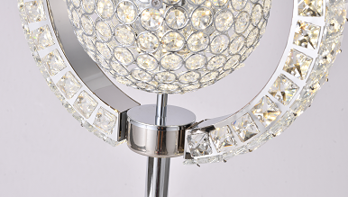 A CHROME FRAME ORB TABLE LAMP WITH CLEAR CRYSTALS