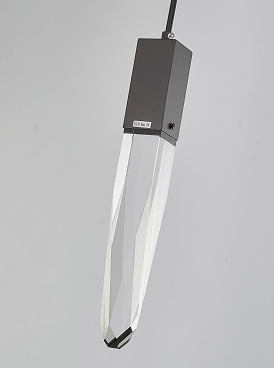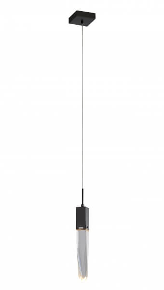 A MATTE BLACK FRAME SINGLE PENDANT LIGHT WITH A CLEAR ICEBERG CRYSTAL