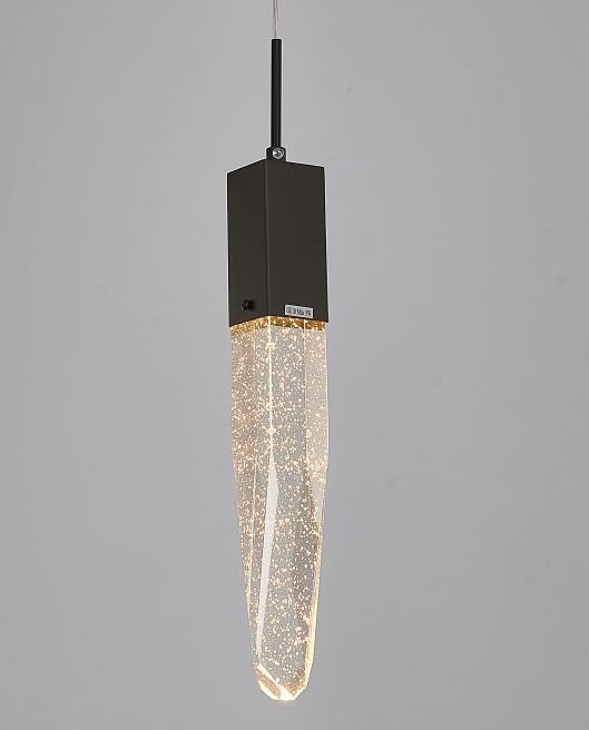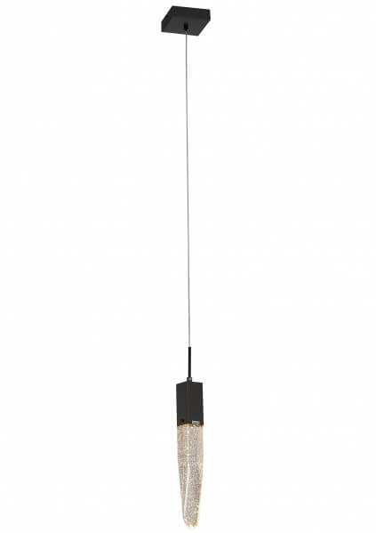 A MATTE BLACK FRAME SINGLE PENDANT LIGHT WITH A CLEAR ICEBERG BUBBLE CRYSTAL