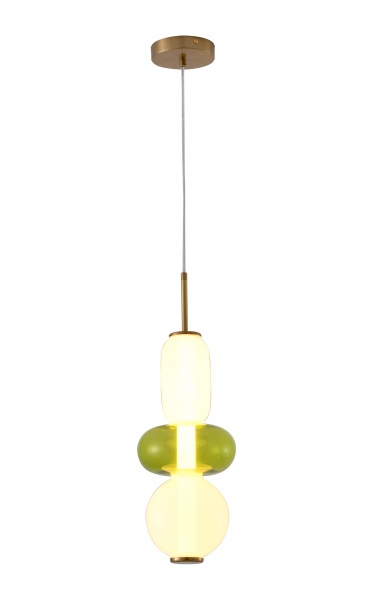 A WHITE & GREEN GLASS LED PENDANT LIGHT WITH GOLD HARDWARE