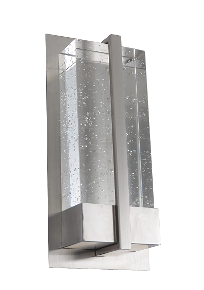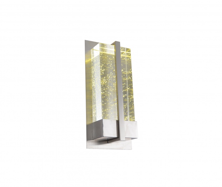 Description : CLEAR BUBBLE CRYSTAL WALL SCONCE WITH A BRUSHED NICKEL FRAME