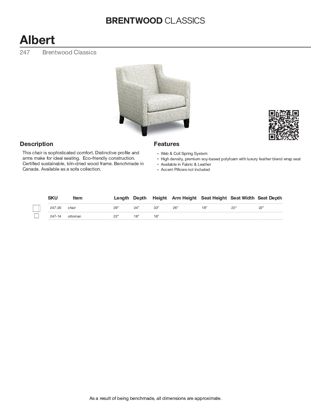 This chair is sophisticated comfort. Distinctive profile and arms make for ideal seating. Eco-friendly construction. Certified sustainable, kiln-dried wood frame. Benchmade in Canada. Available as a sofa collection.