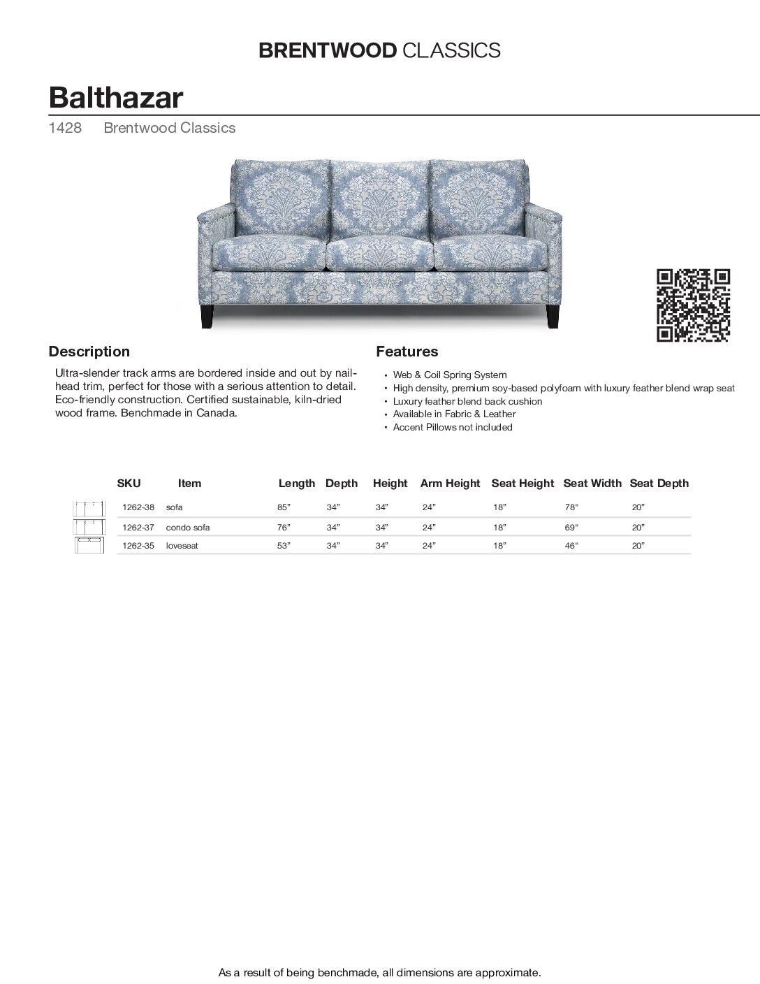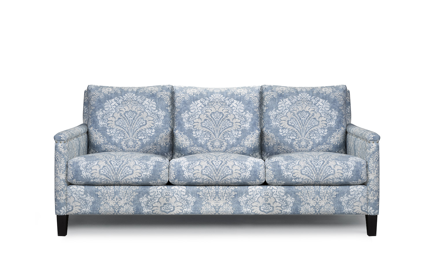Ultra-slender track arms are bordered inside and out by nailhead trim, perfect for those with a serious attention to detail. Eco-friendly construction. Certified sustainable, kiln-dried wood frame. Benchmade in Canada.