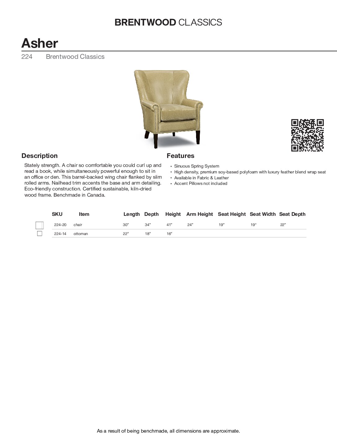 BRENTWOOD CLASSICS ASHER CHAIR COLLECTION 224-20