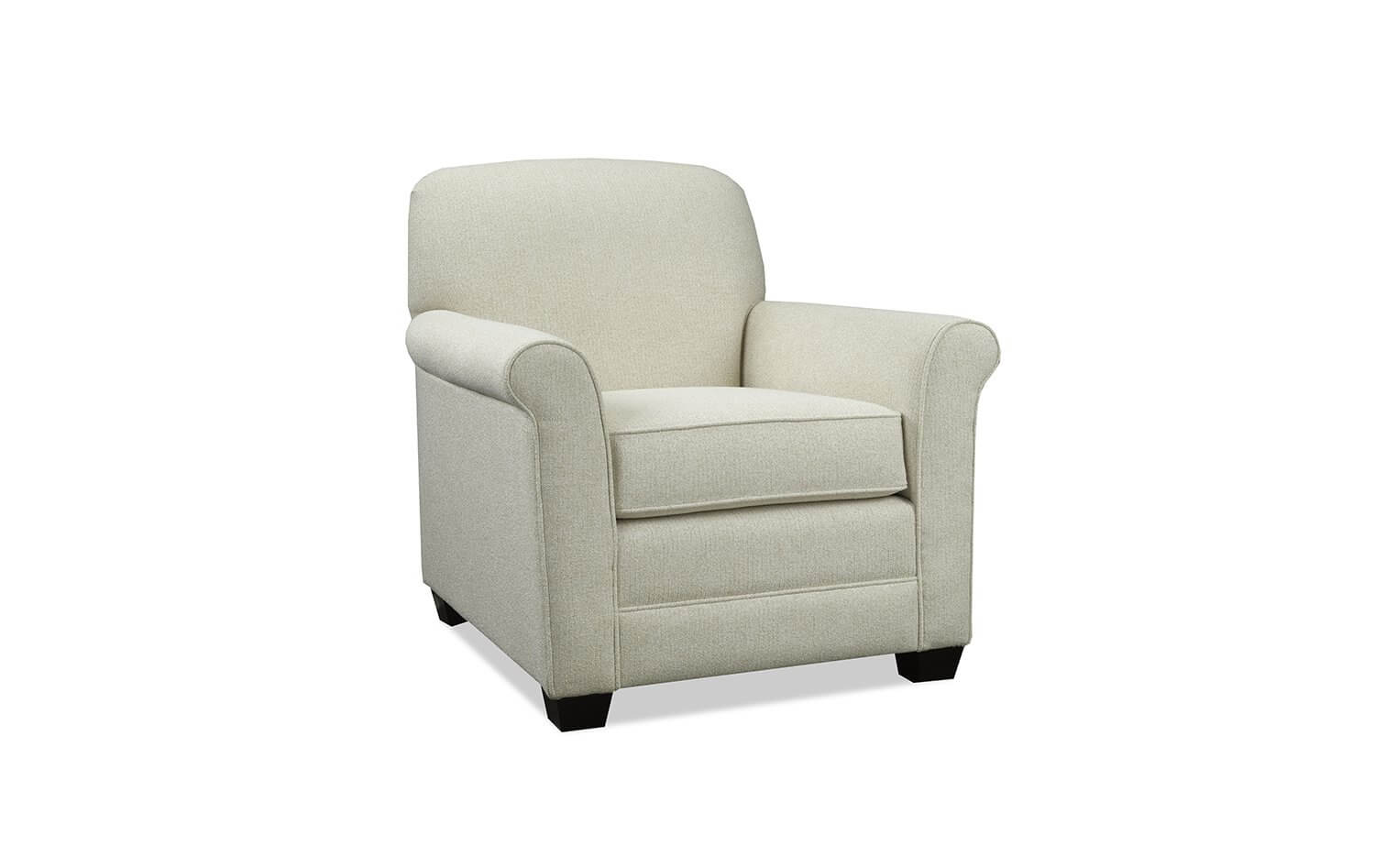 Curves meet comfort in this traditional accent chair. Eco-friendly construction. Certified sustainable, kiln-dried wood frame. Benchmade in Canada. Available as stationary or swivel.