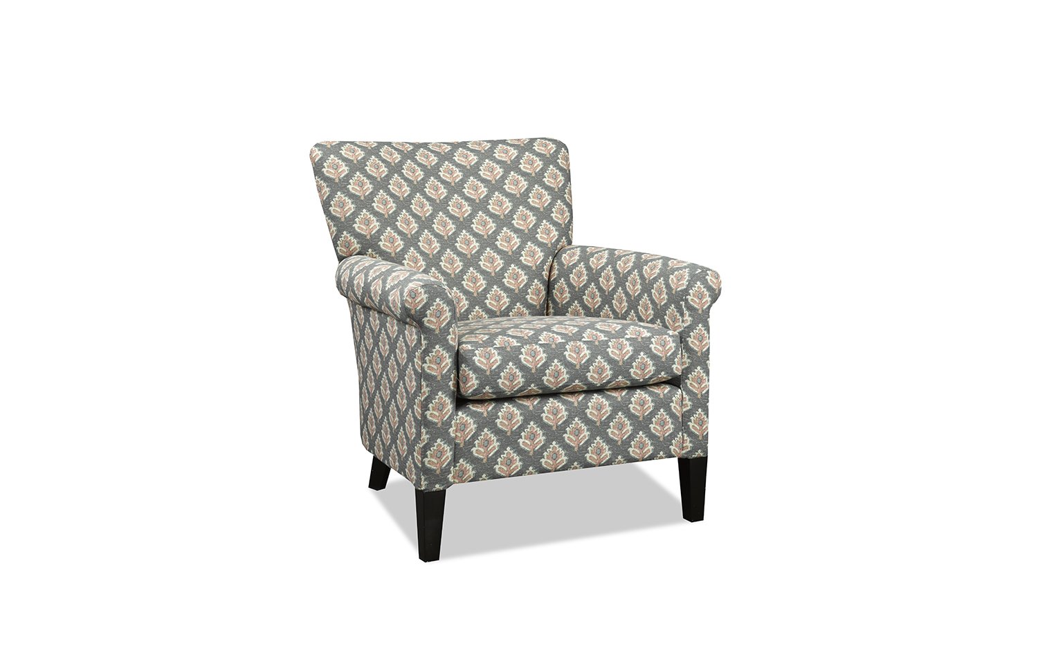 Curves meet comfort in this traditional accent chair. Eco-friendly construction. Certified sustainable, kiln-dried wood frame. Benchmade in Canada.