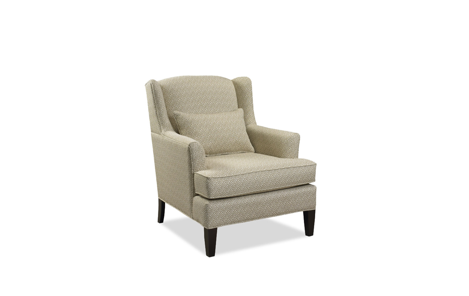 This chair has a sophisticated shape. The slim arms give this modern chair a traditional feel. Eco-friendly construction. Certified sustainable, kiln-dried wood frame. Benchmade in Canada.