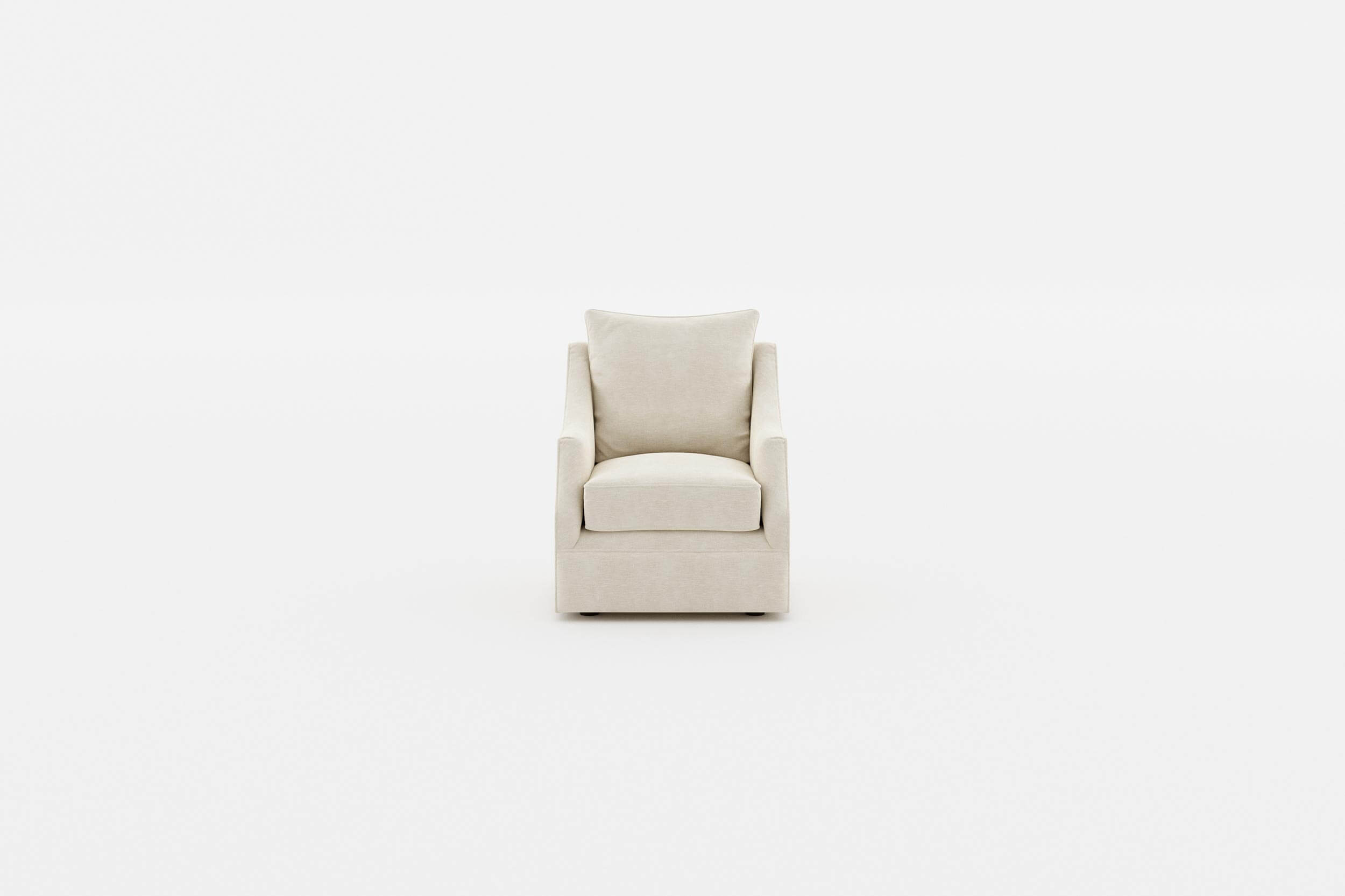 Classic comfort is this modernized traditional swivel chair with feather seating that hugs you when you sit. Eco-friendly construction. Certified sustainable, kiln-dried wood frame. Benchmade in Canada. Available as a sofa collection.