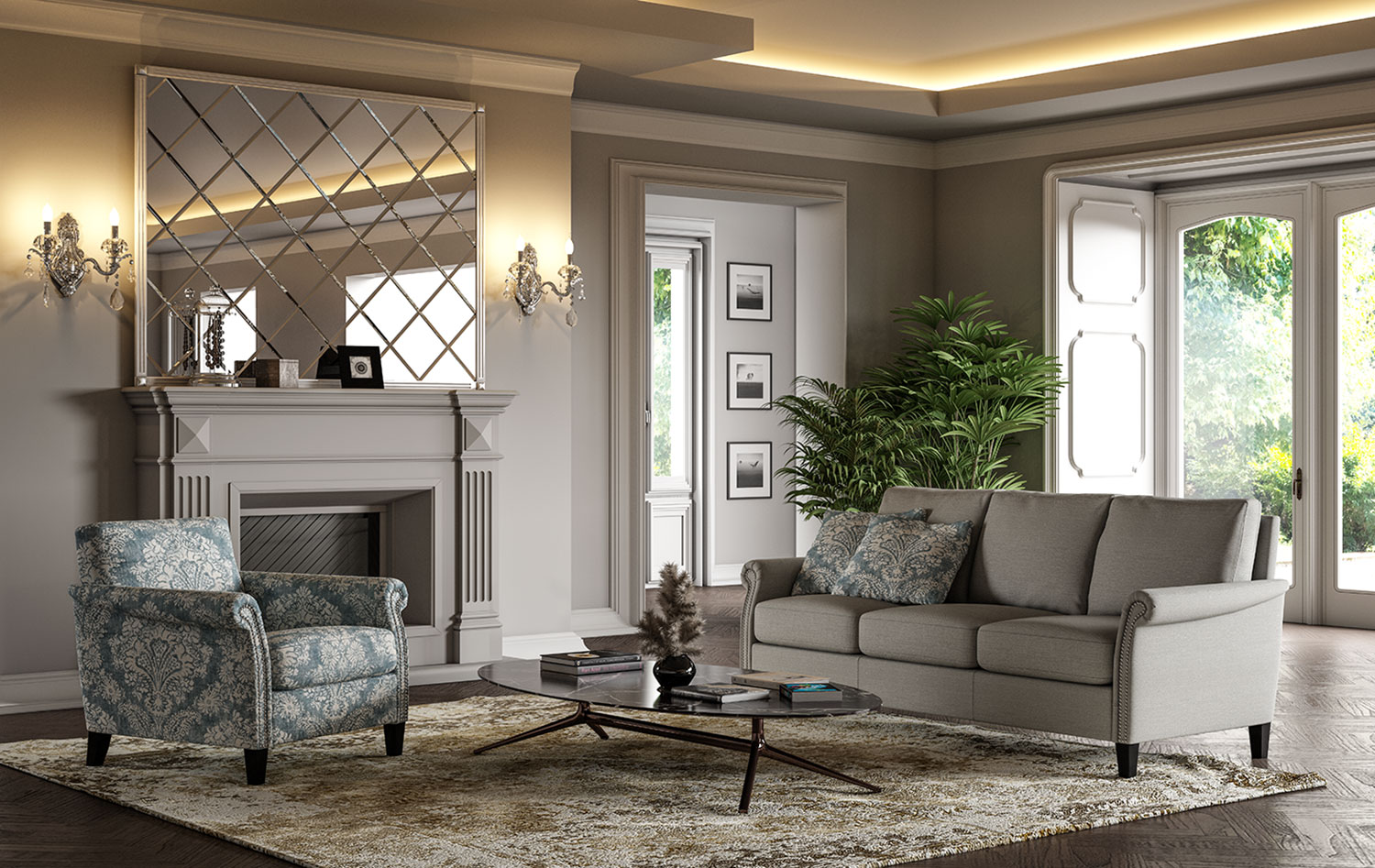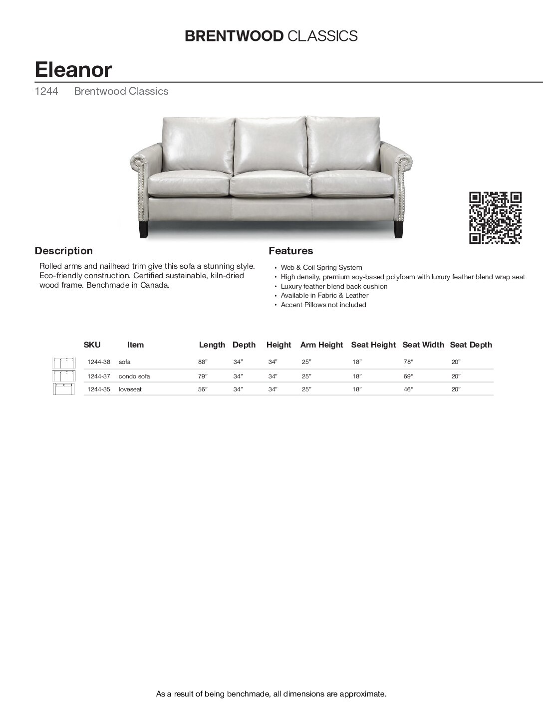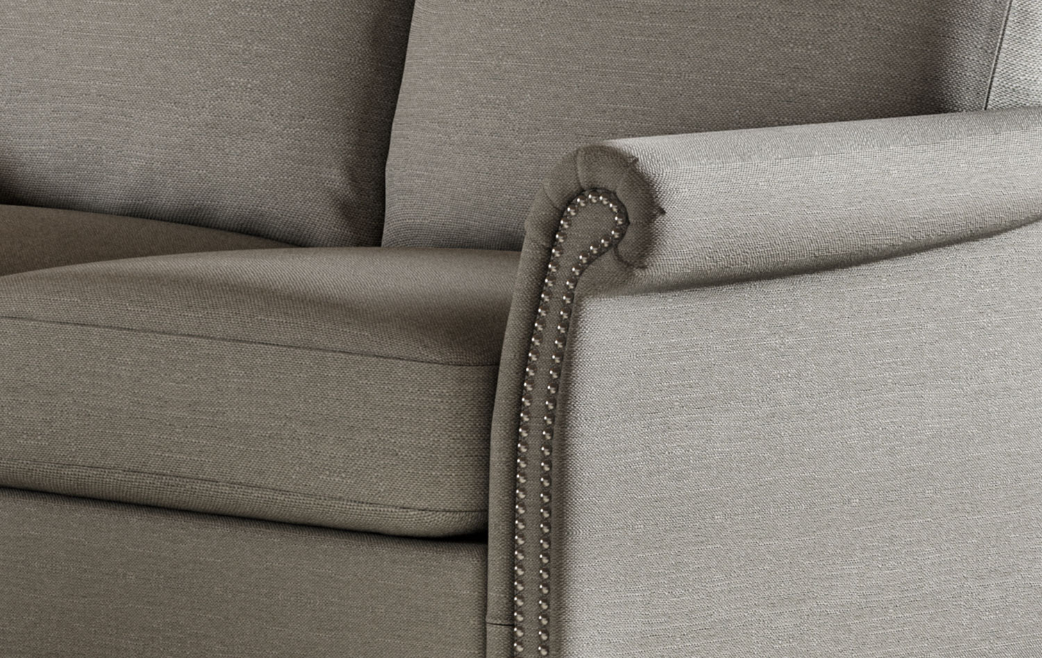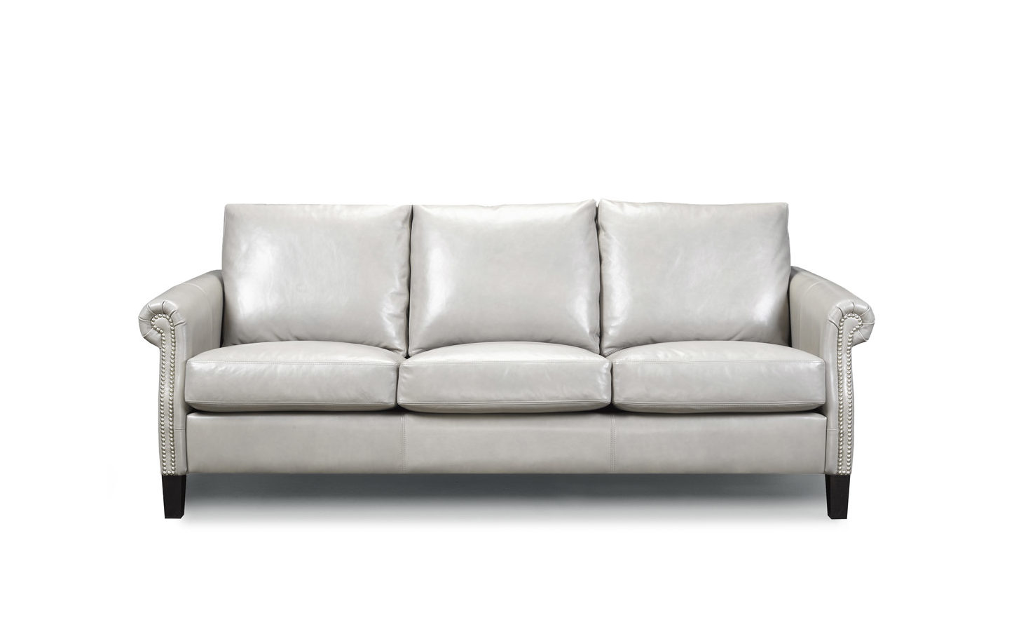 Rolled arms and nailhead trim give this sofa a stunning style. Eco-friendly construction. Certified sustainable, kiln-dried wood frame. Benchmade in Canada.