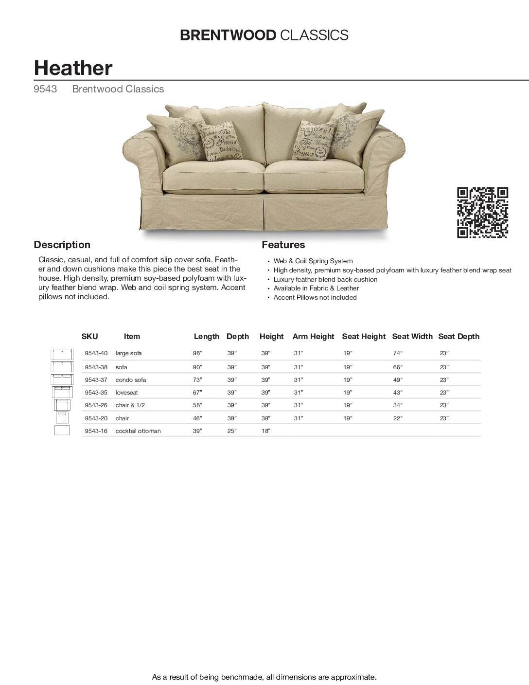 BRENTWOOD Heather Slipcover Sofa 9543-38