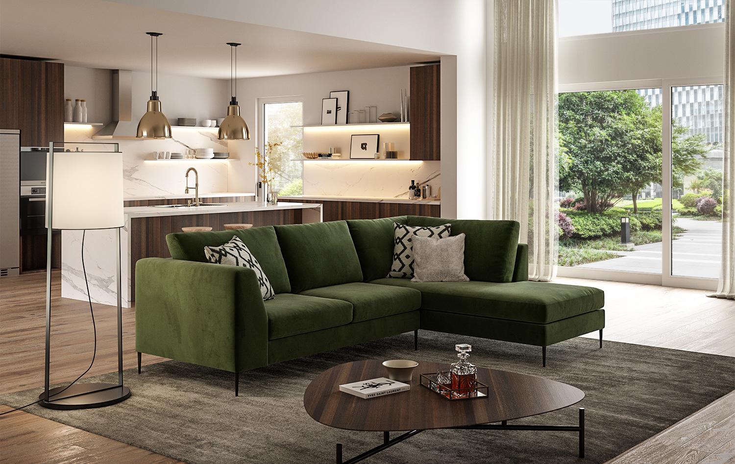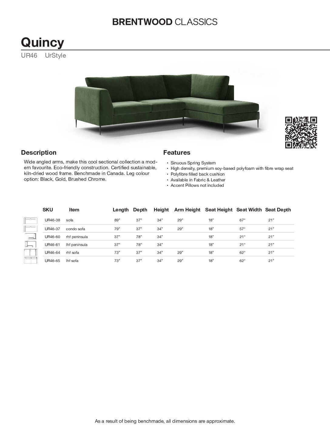 Wide angled arms, make this cool sectional collection a modern favourite. Eco-friendly construction. Certified sustainable, kiln-dried wood frame. Benchmade in Canada.