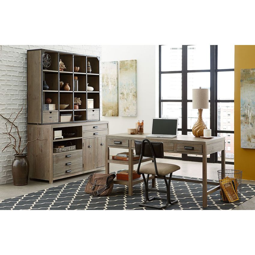 in a Sandalwood Finish that has a clean repurposed quality with knots, distressing