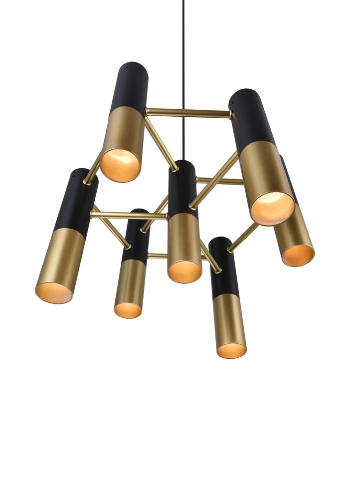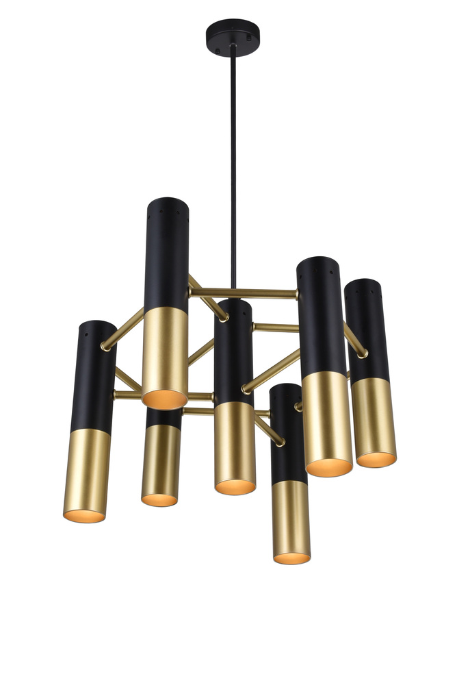 This breathtaking 7 Light Down Chandelier with Matte Black & Satin Gold finish is a beautiful piece from our Anem Collection. With its sophisticated beauty and stunning details, it is sure to add the perfect touch to your décor.